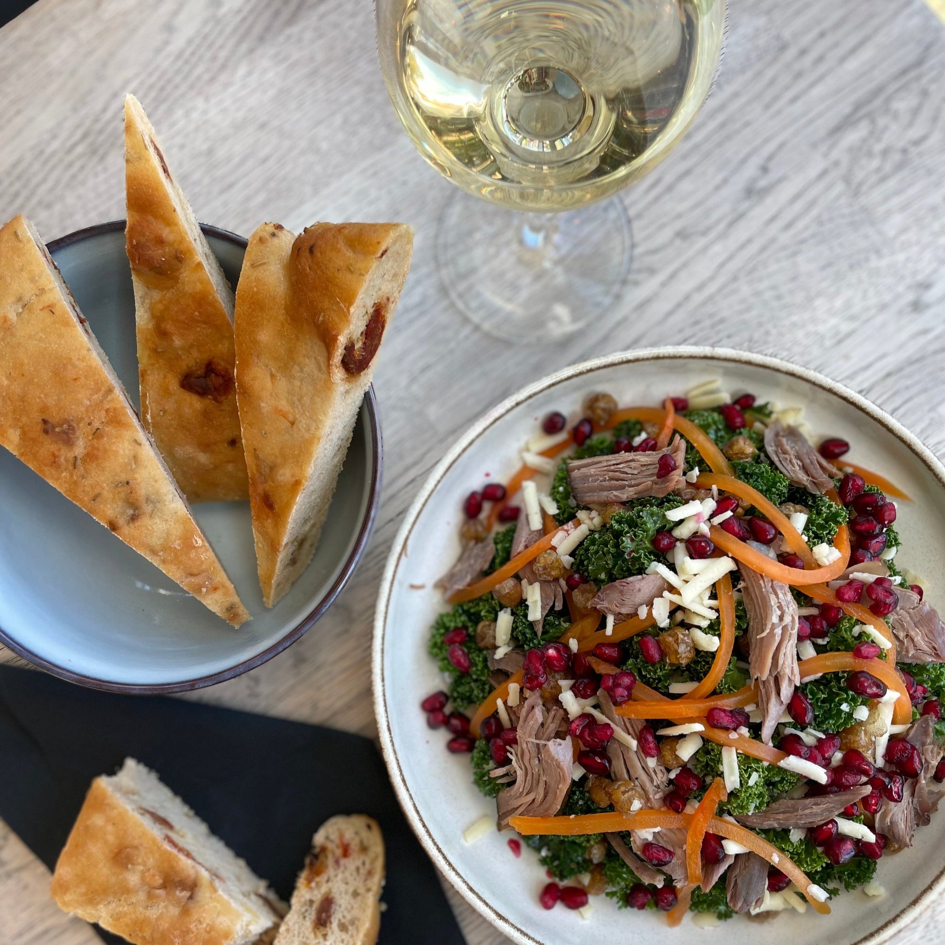 Prisen er inkl. en salat og et glas vin fra Nelle's - mums!